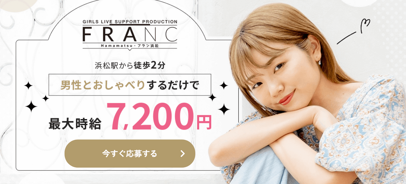 フラン浜松は浜松駅から徒歩2分という抜群のアクセスにあるチャットレディ事務所です。
