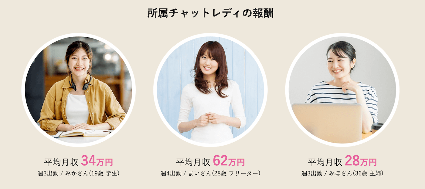 「副業で週2〜3日働いています。時給が安定して2,500円以上の時も多いので、本業後でも集中して稼げます。スタッフさんのサポートが丁寧で、“どういう話題が反応しやすいか”など細かいアドバイスをもらえるのも嬉しいです。月収は20万〜28万円くらいで安定しています。」