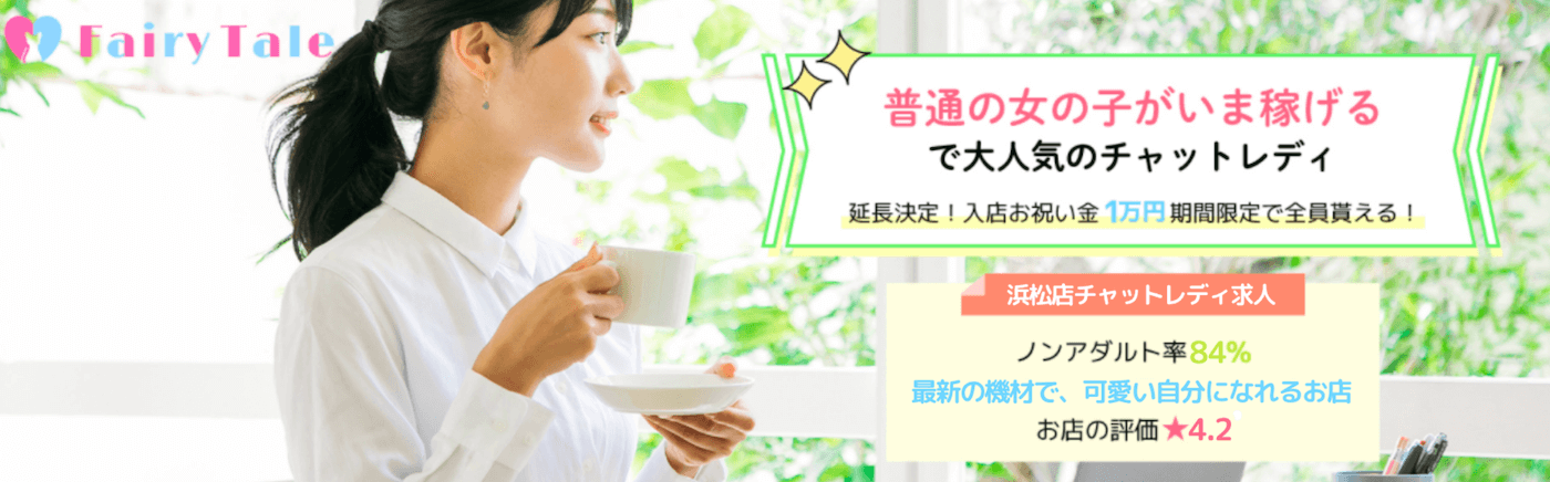 また、交通費全額支給、日払いOK、レンタル衣装200着以上完備で手ぶら出勤OK、そして入店祝い金最大10万円キャンペーンもある至れり尽くせりの待遇ななので、浜松でチャットレディに興味のある人におすすめです。