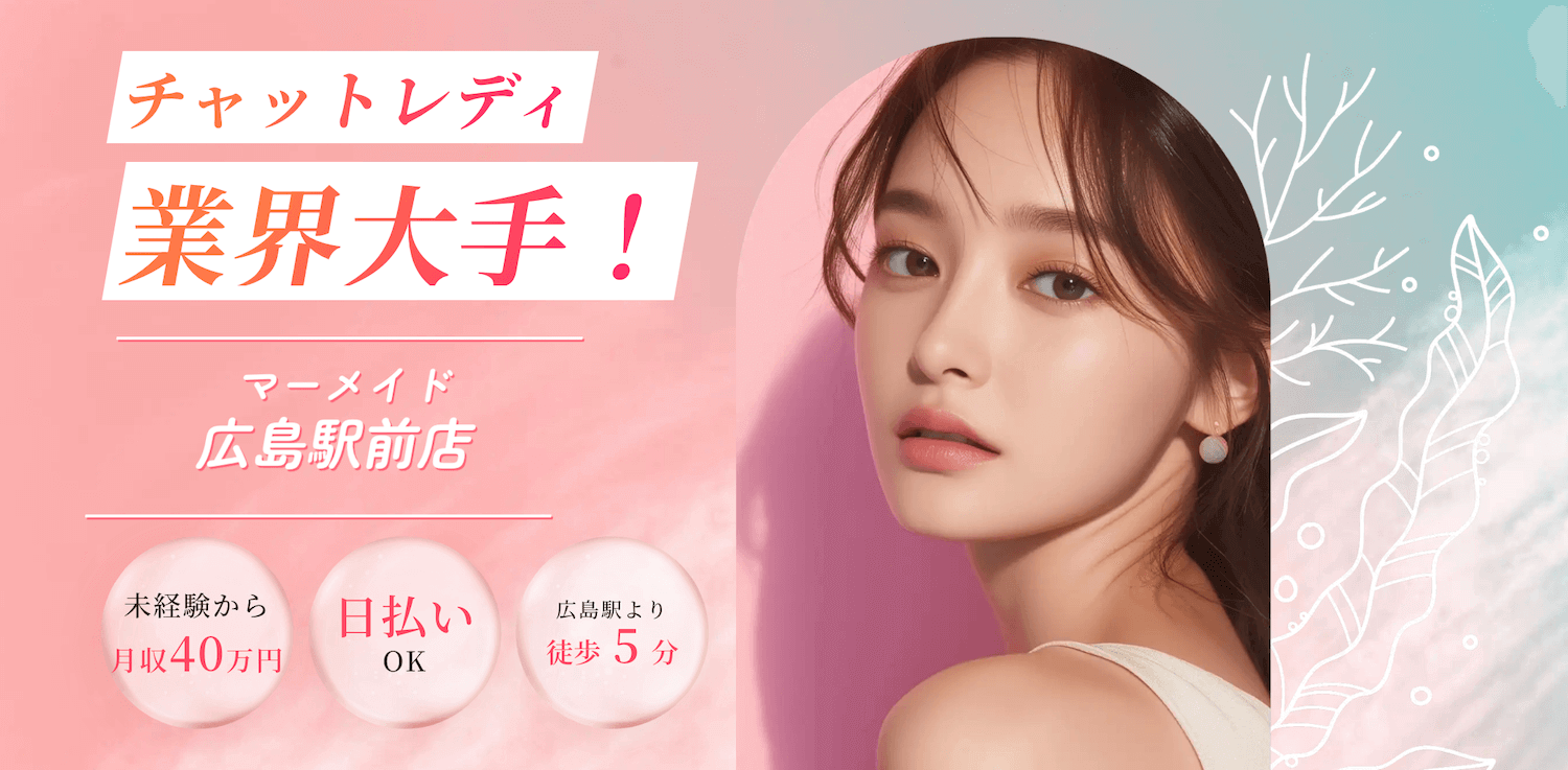 マーメイド広島駅前店は、広島駅周辺にあるチャットレディ事務所で、アクセスの良さと働きやすさが魅力です。駅から近い場所にあるため、学校や本業の仕事帰りでも通いやすい環境になっています。