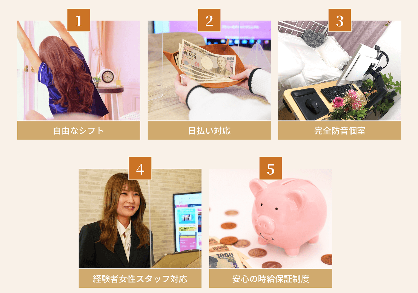| 福利厚生 | 日払い対応、面接交通費支給、衣装レンタル、税務サポート |