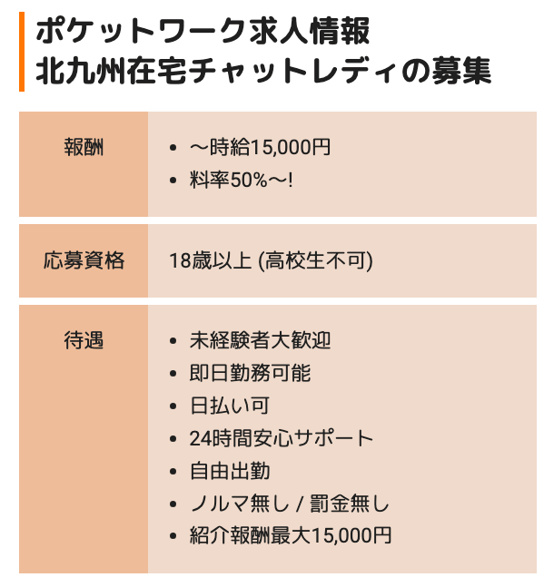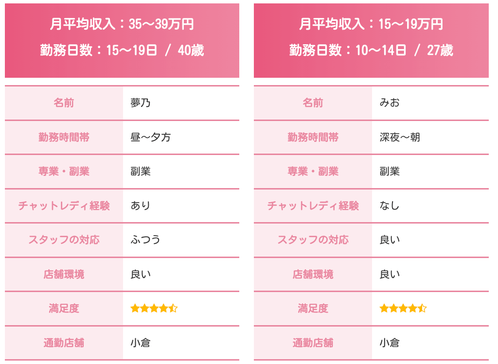 北九州(小倉エリア)で実際に働いているチャットレディの体験談を紹介します。