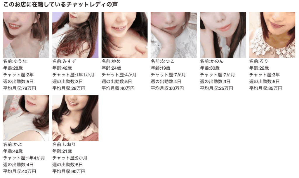 アルバイト代だけでは足りなくて応募しました。スタッフがチャットの基本から丁寧に教えてくれたので安心でした。今は月12万〜15万円くらいです。