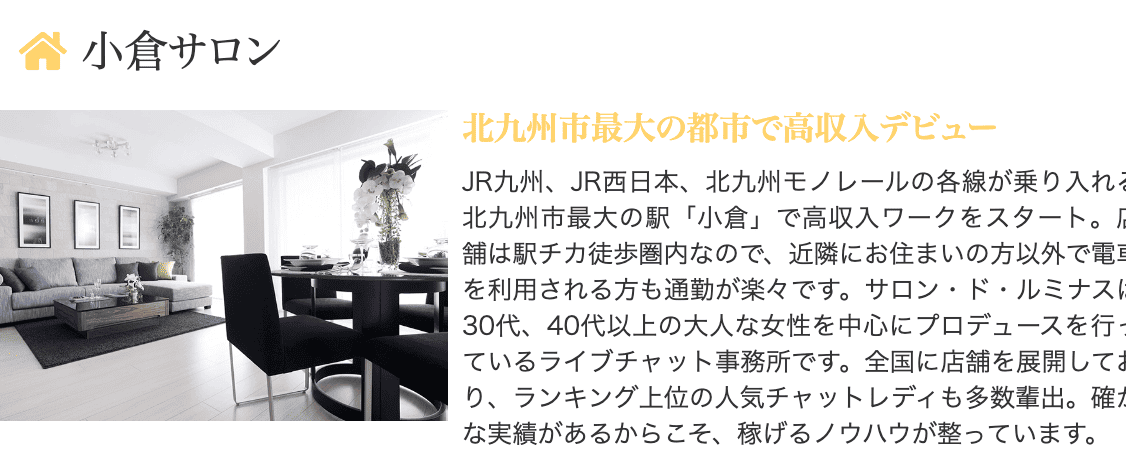 ここでは、小倉でおすすめのチャットレディ事務所を紹介します。