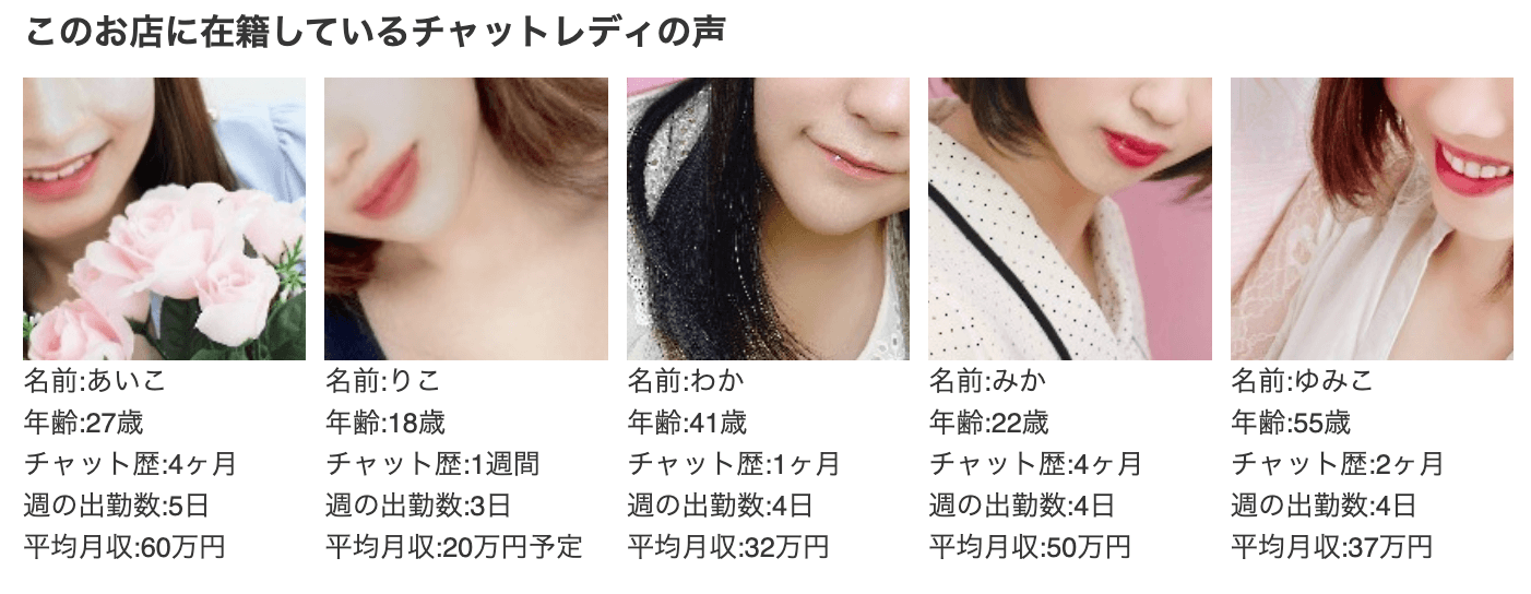 特徴としては、現役チャットレディスタッフによる丁寧なサポート体制です。初心者が相談しやすい雰囲気を作っている印象です。