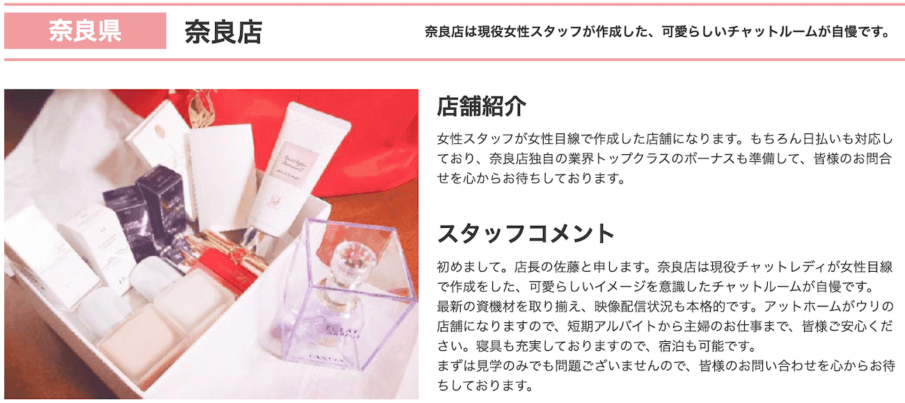 ここでは、奈良でおすすめのチャットレディ事務所を紹介します。