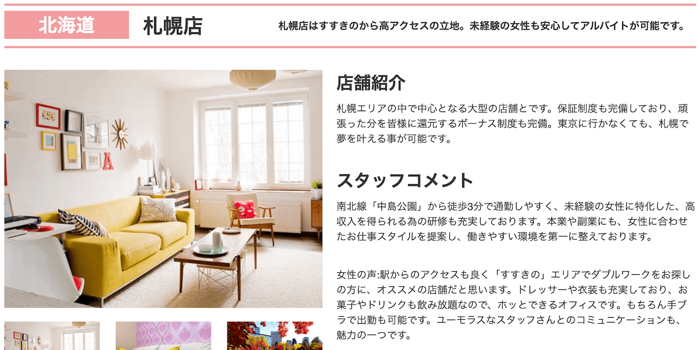 また、札幌店の平均時給は5,000円を超えているため、高時給を目指したい女性にぴったりです。