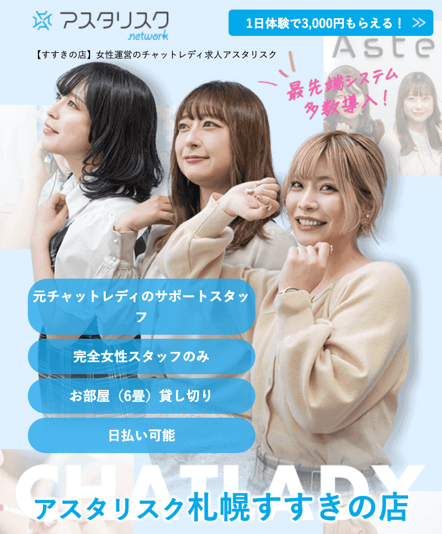 そこでこの記事では、札幌で人気のチャットレディ事務所を紹介します。