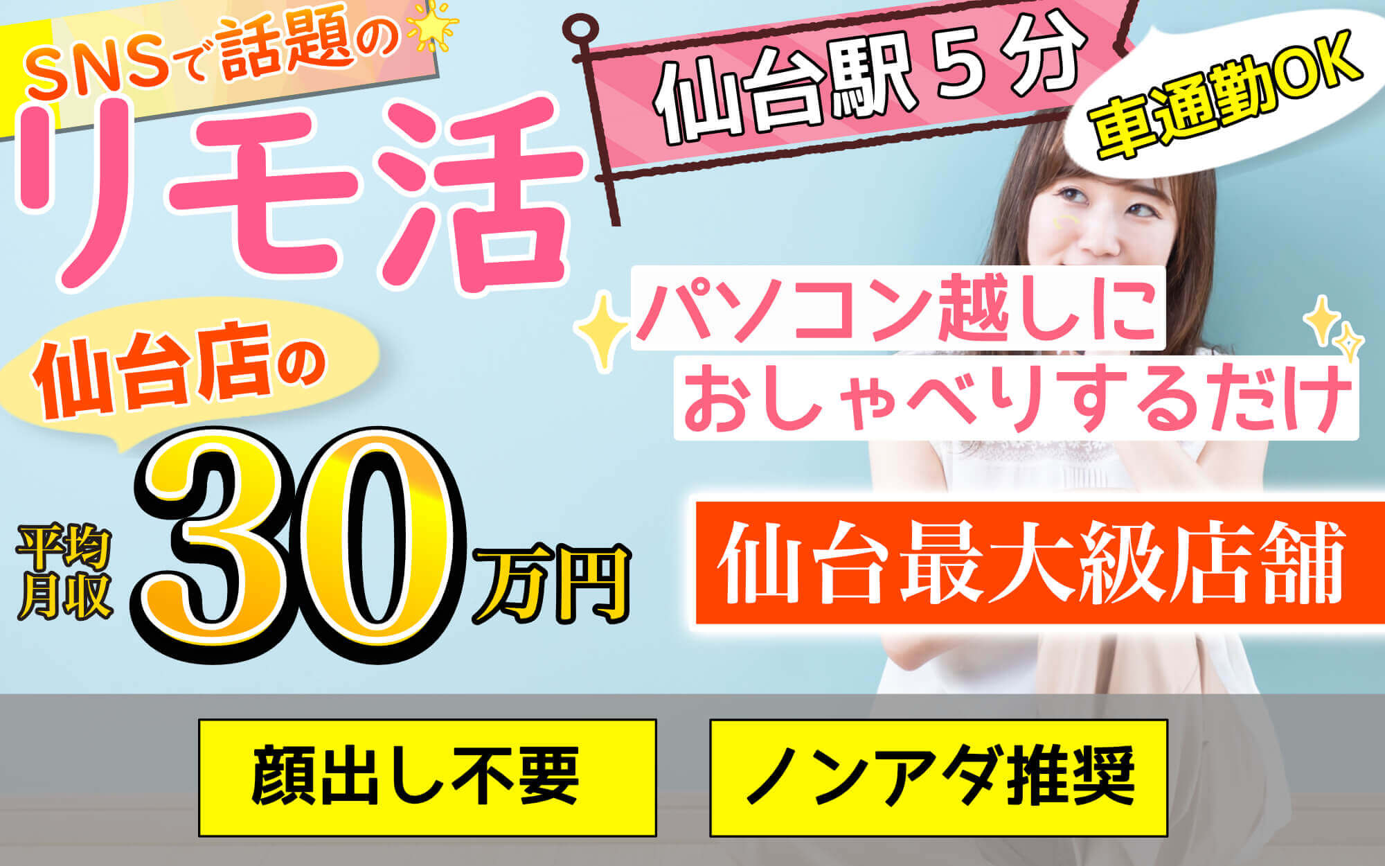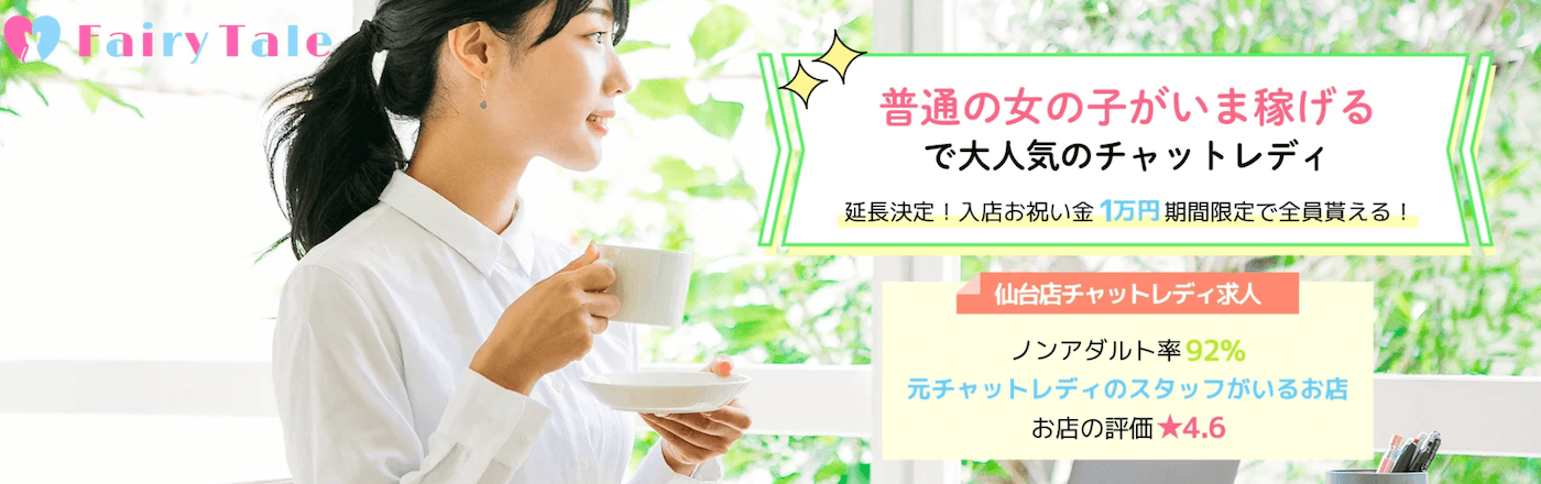 仙台店在籍女性の平均月収30万円であるため、チャットレディでしっかり稼ぎたい女性におすすめと言えます。