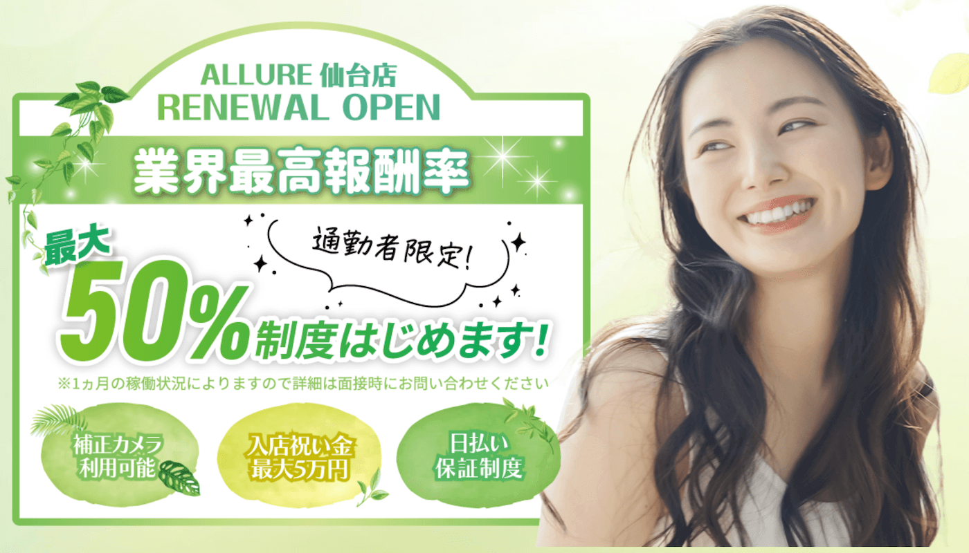 仙台店は平均時給5,000円を超える高時給店舗であり、待遇の良さとサポート体制の充実度が評価されています。