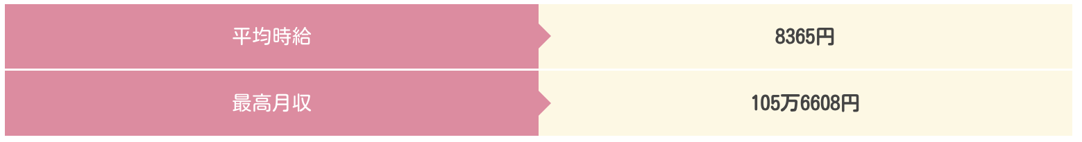 静岡店の平均時給はなんと8,365円と高時給であることがわかります。もともとの報酬率の高さに加えて稼ぐためのサポートが徹底してるので、高収入を実現している女性が多いです。