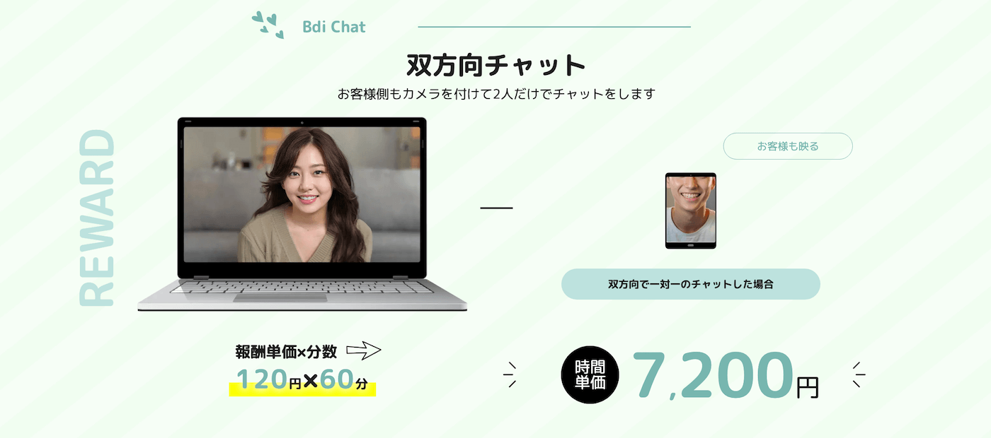 男性のリクエストに応じて、大人向けの会話をしたり、セクシーな雰囲気で対応したりします。その分、報酬単価が高めであり、短時間でも稼ぎやすいのが特徴です。